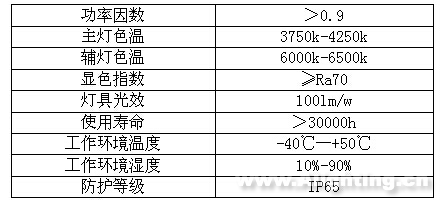 3)照明工程指标:整灯高度15米,双向对称式布灯。