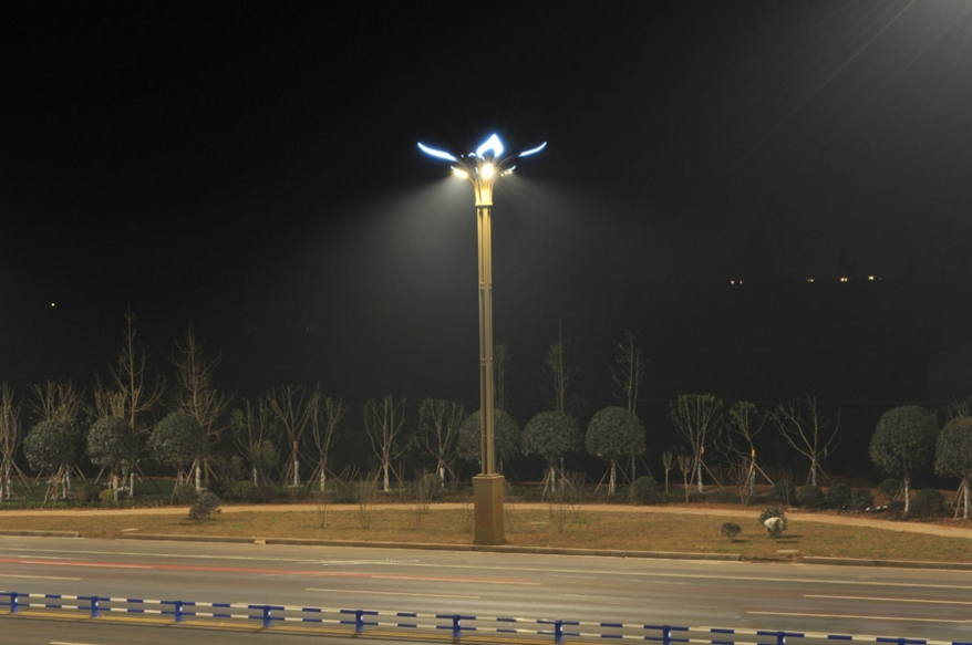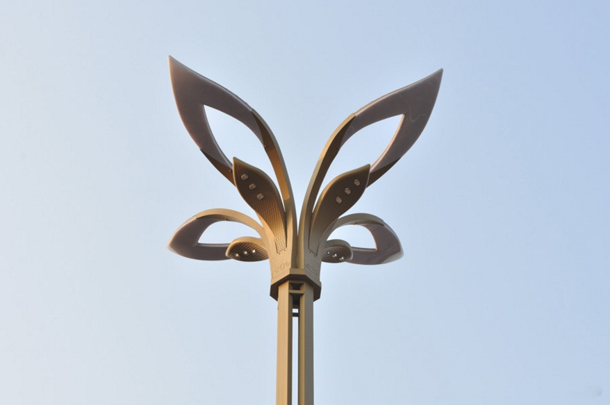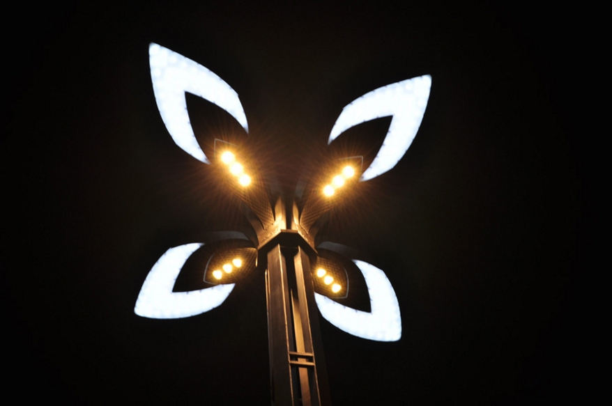 2)“盛莲”景观路灯技术指标:整灯功率960W,由2*240W主光源对应路面方向,2*120W辅光源对应人行道方向,顶部4*60W发光叶片为装饰光源;