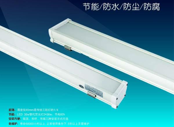 高亮度:普瑞斯LED三防灯灯采用高效LED芯片以及高导热材料板制造而成,1米中心照度比传统三防灯(2×36W)高15%。