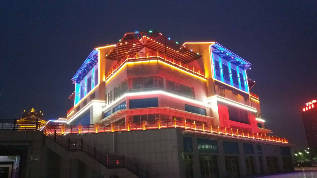书圣国际文化城采用了我们华亚照明洗墙灯4660米,二次封装点光源83000个,6W射灯1280个,双向壁灯280个,10公分点光源3700个,十字星光灯220个,LED线条灯6300米制作而成的夜景灯光效果。书圣国际文化城 位于书法广场,计划总投资10亿元,用地面积90亩,预计2012年9月开工,2013年12月竣工。主要经营范围包括古玩字画、奇石玉器、红木家具及旅游产品的批发零售等。地处蒙山大道北段东侧,南邻双岭路,北临书法广场,与长途汽车总站相距300米,可直接进入京沪高速临沂入口,区位优势得天独厚。