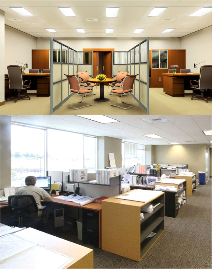 办公室良好的照明要提供一个简洁明亮的环境,满足员工办公、沟通、思考、会议等工作上的需要,还要保持区域之间的统一性和舒适性,提高员工的工作效率。同时还可以通过办公空间向来访游客传播良好的形象。