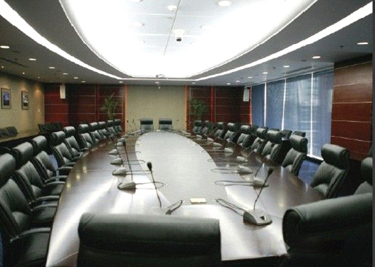 四、会议室是公司重大决策议会的场所,包括会议、培训、谈判、视频观摩、会客等功能,照明应配合不同的用途,结合智能控制进行简单的切换或者模式选择,实现不同的功能场景照明上的要求。无论会议时间长短,参加人员多少,不论是大会议厅中单向的报告性会议还是中小会议室中圆桌沟通会议形式,会议室照明的目的就是激发参会者的想象力,鼓励他们相互交流。同时,与会者面部表情的传达也是会议室照明中最主要的任务,照明应该避免不合适的阴影和明暗对比。可以采用射灯或洗墙灯对墙立面进行洗墙照明,为单调的长时间会议环境提供富于趣味的环境光。结合天花装饰结构,可采用悬吊式灯具或隐藏式灯具形成灯带间接照明。小会议室要加强光影效果,避免小空间带来的压抑感,可以采用上下都可出光的间接照明灯具,均匀照亮天花和墙壁。