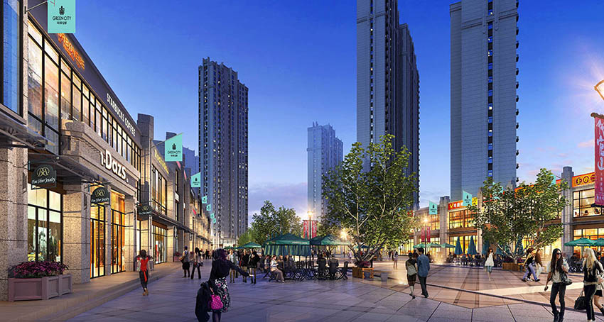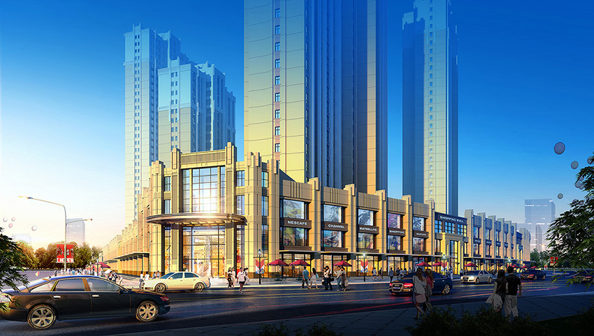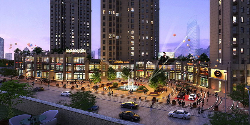 整体景观照明表现出文化气息和时代特色,同时兼顾到沿街建筑的商业定位,人行道及慢行道树木景观的合理配比。沿途建筑照明通过维护、修缮、梳理等措施,以 LEO 节能灯具为主,辅助使用高效的金卤灯和钠灯,严格控制眩光,避免造成光污染,连接地标性景观照明,将众美凤凰绿都建设成为集商贸、休闲、娱乐于一体的标志性区域。
