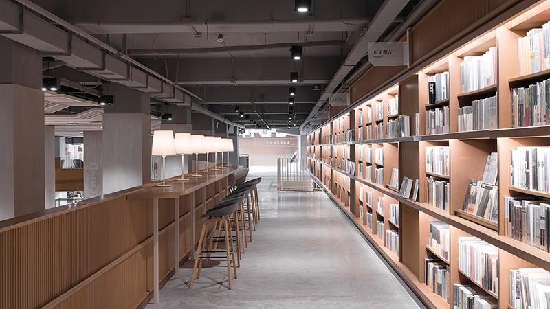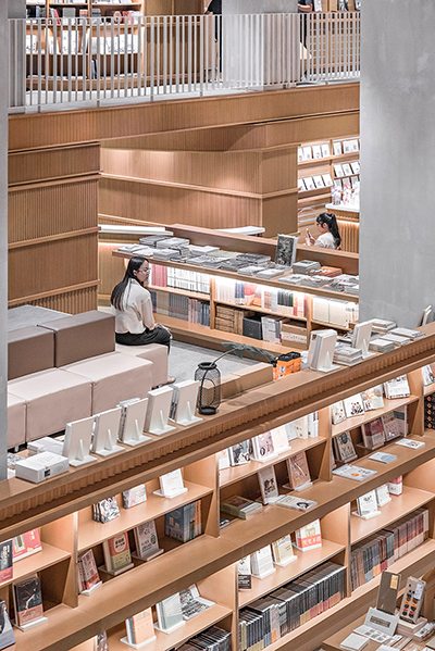 一些较为紧凑和密闭的、服务于特殊功能的空间,如儿童书店和为视听活动准备的多功能空间等,皆被扩展至开放的双层高空间,如书店的中轴,以及用于家庭活动的图书岛。交通空间穿插着一些驻足区域,可供顾客为其喜欢的书本稍事停留,或用于进行一些集体性的活动。