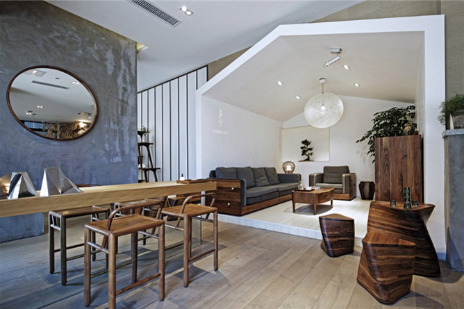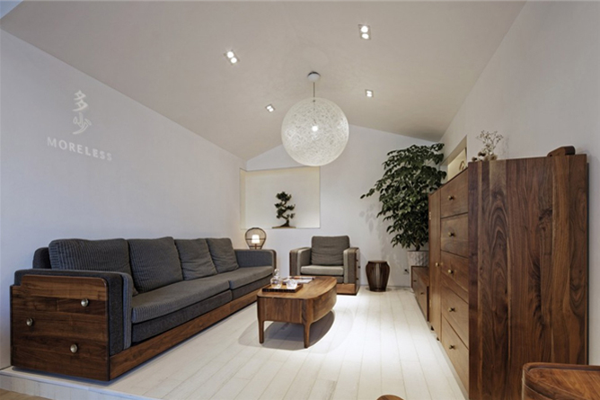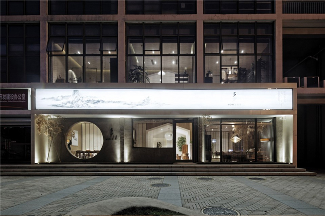 石家庄华亚照明在对家具店延续了多少家具空间的主要视觉元素和材质。外立面以简朴的手法,采用了粉刷水泥外墙,耐用并且朴实无华。门面上部安装了一个以白色为主的灯箱,上面有经过现代设计处理的《富春山居图》片段,表达出了多少家具向中国传统文人文化致敬的态度,清新的门面,也为门前的小广场增加了一丝书卷气。